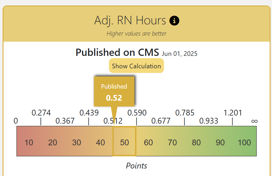 Adjusted Total Nursing Hours per Resident Day – 50 out of 100 Points